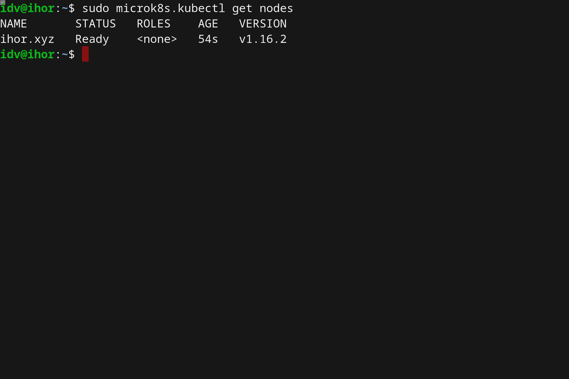 Using MicroK8s is as straightforward as installing it. MicroK8s itself includes a kubectl binary, which can be accessed by running the microk8s.kubectl command. As an example: